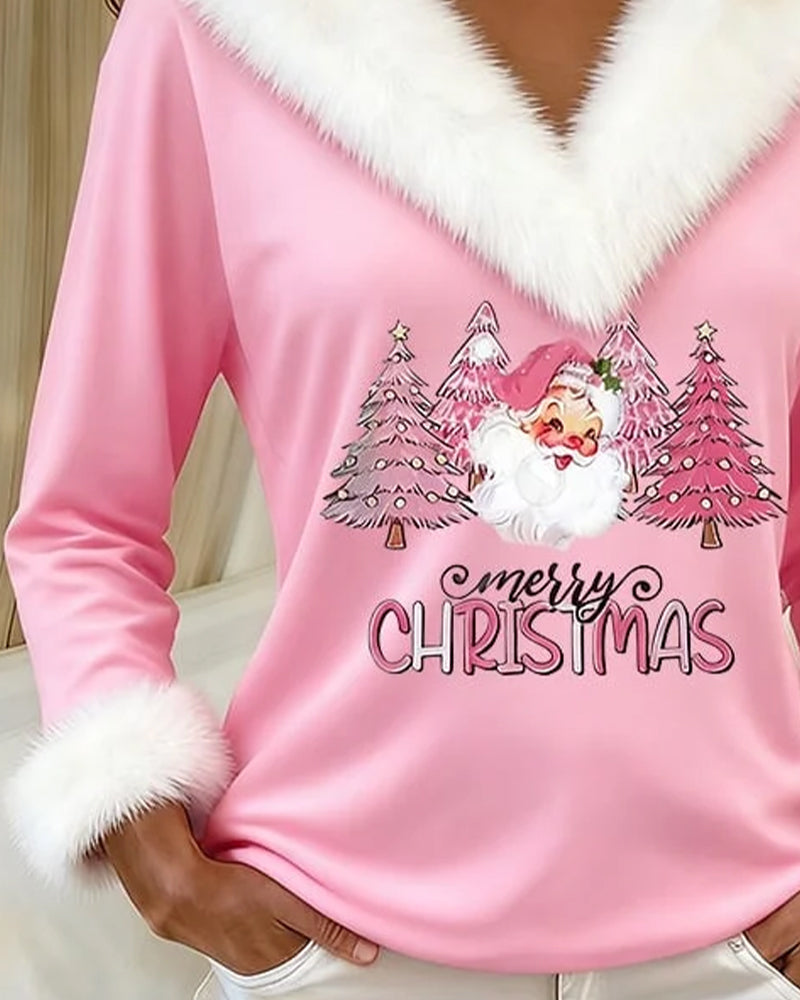 Large Fur Collar Printed Top