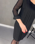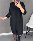 The Pleated Patchwork Mesh Solid Color Dress is a graceful blend of texture and movement. With soft pleats, sheer mesh accents, and a clean solid tone, it brings understated elegance to every step—light, layered, and full of quiet confidence.