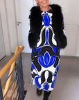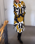 The round neck frames your face with quiet elegance, while the printed design adds personality and movement. Whether worn solo or layered, this dress adapts to your rhythm with grace.